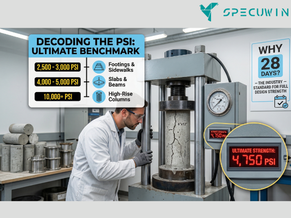 - 4,000 – 5,000 PSI: Used for suspended slabs and heavy-duty beams.