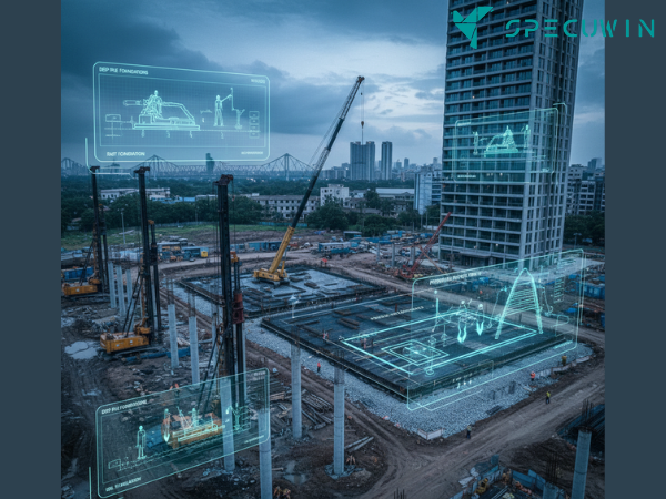 1. Deep Pile Foundations: For high-rises and heavy structures in Kolkata, pile foundations are essential. These long columns (often 10–60 meters) transfer the building’s weight past the soft clay layers down to stable soil or bedrock.
