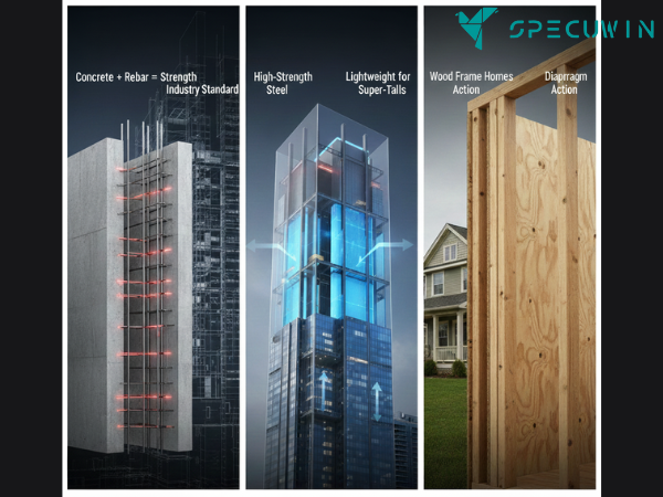 - Plywood Shear Walls: Common in residential timber homes (not high-rises), but the physics principle remains the same.