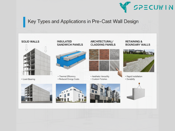 Pre-cast wall design is highly versatile, offering solutions for nearly every part of a building envelope and structure. The type selected depends entirely on the required function, from load-bearing to pure aesthetics: