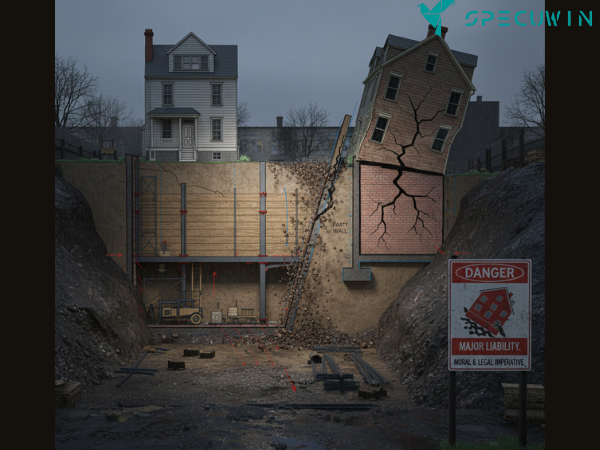 Excavation doesn’t happen in a vacuum, especially in urban areas where houses are built close together. When you dig down, you change the lateral support for the soil next to you the soil that happens to be holding up your neighbor’s house.