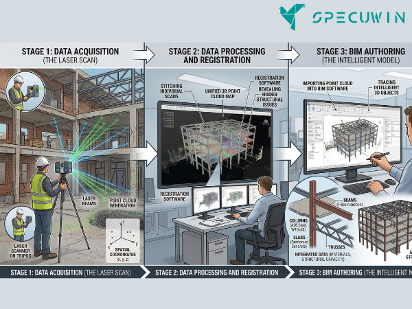 The transition from a physical site to a digital model is a sophisticated process that requires both high-end hardware and specialized BIM expertise. The Scan-to-BIM workflow generally follows three critical stages: